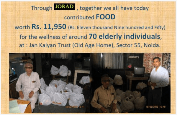Together with my friends, we could contribute FOOD worth around Rs.12K for an Old Age Home in Noida.